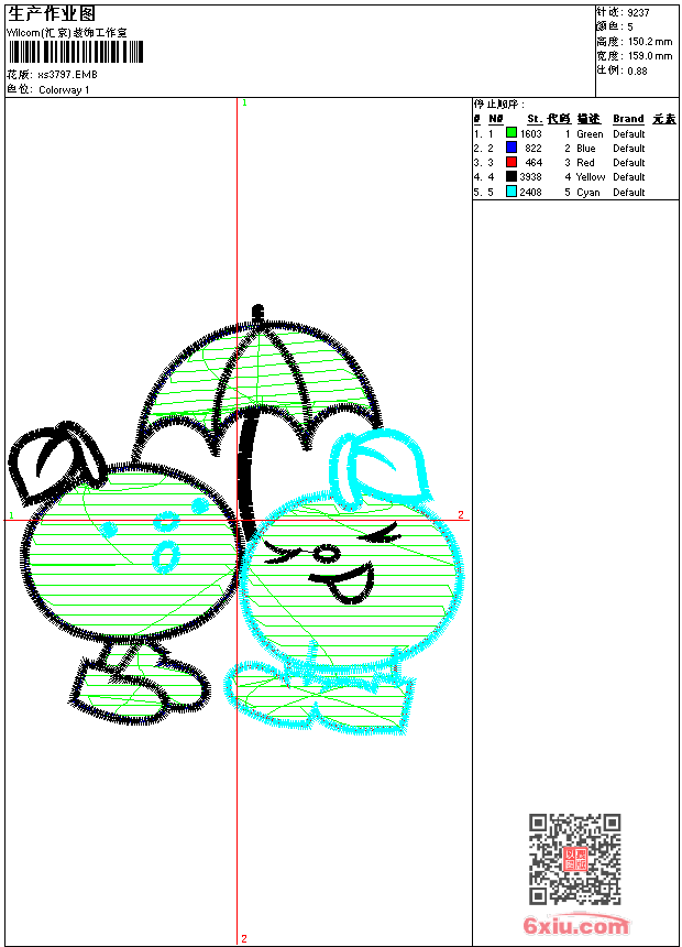 - 版带文件需绣花软件方可打开,可配色打印导出各种格式或直接上机绣。如无绣花软件可下载1:1模拟效果图。
