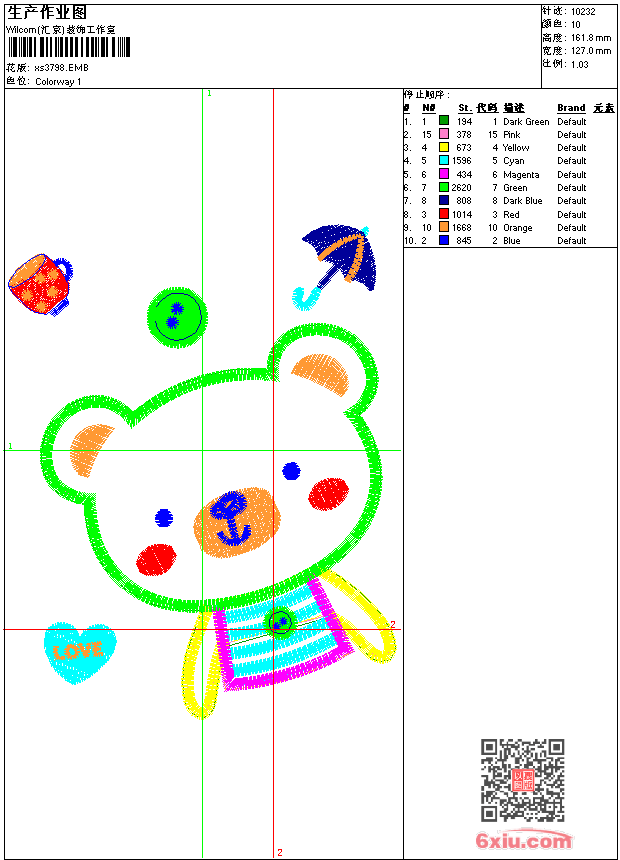 - 版带文件需绣花软件方可打开,可配色打印导出各种格式或直接上机绣。如无绣花软件可下载1:1模拟效果图。