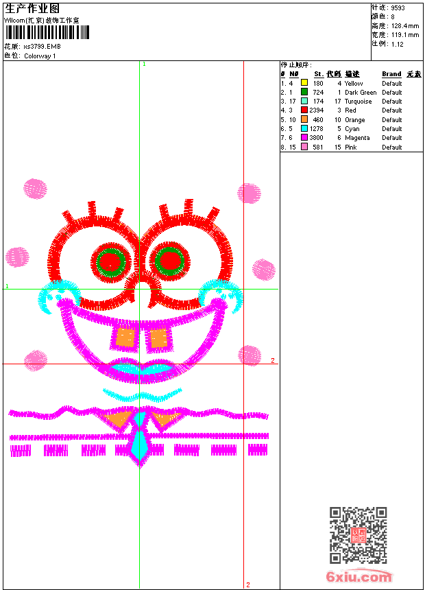 - 版带文件需绣花软件方可打开,可配色打印导出各种格式或直接上机绣。如无绣花软件可下载1:1模拟效果图。