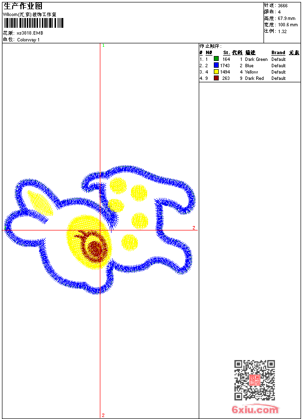 - 版带文件需绣花软件方可打开,可配色打印导出各种格式或直接上机绣。如无绣花软件可下载1:1模拟效果图。