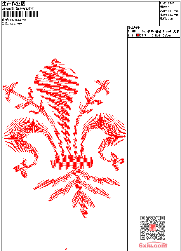 - emb花版参数: 大小:28.50 KB / 尺寸:62*80[毫米] / 针数:2547针 / 线色:1 / 格式:emb / 版本:9