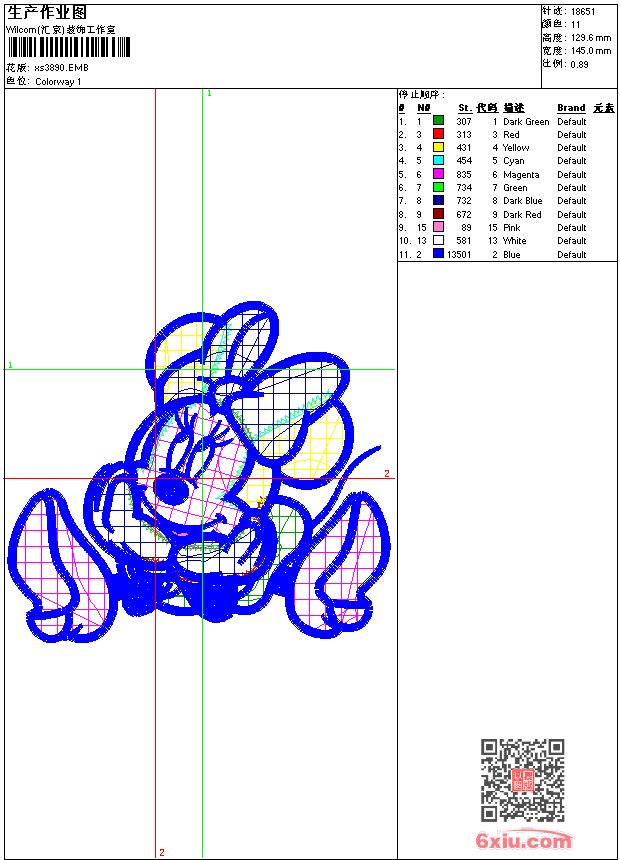 - 版带文件需绣花软件方可打开,可配色打印导出各种格式或直接上机绣。如无绣花软件可下载1:1模拟效果图。