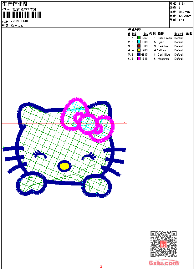 - 版带文件需绣花软件方可打开,可配色打印导出各种格式或直接上机绣。如无绣花软件可下载1:1模拟效果图。
