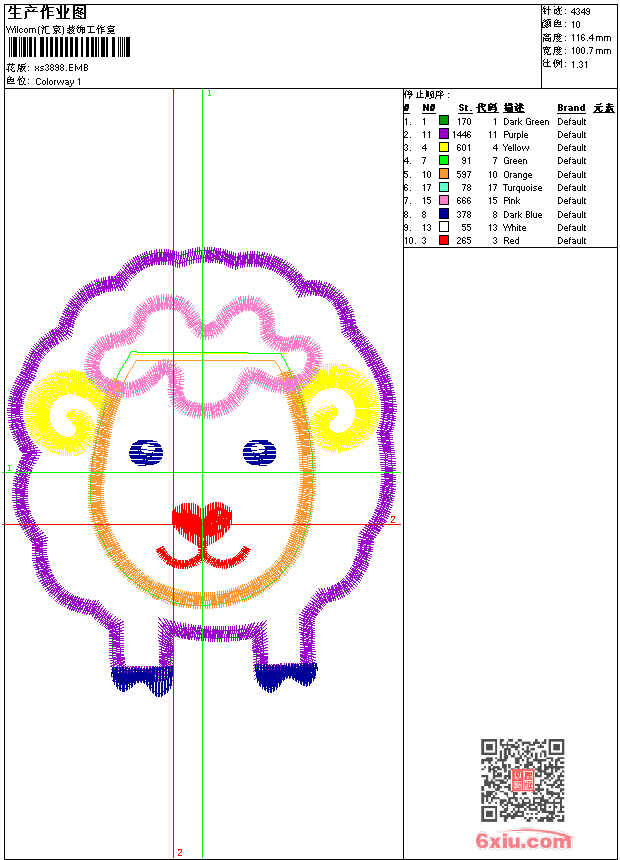 - emb花版参数: 大小:50.00 KB / 尺寸:101*116[毫米] / 针数:4349针 / 线色:10 / 格式:emb / 版本:9