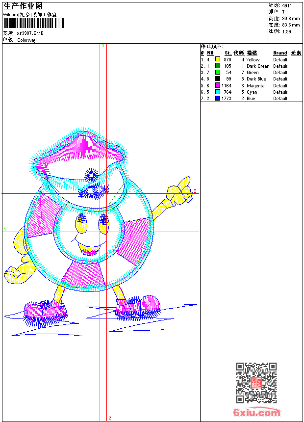 - 版带文件需绣花软件方可打开,可配色打印导出各种格式或直接上机绣。如无绣花软件可下载1:1模拟效果图。
