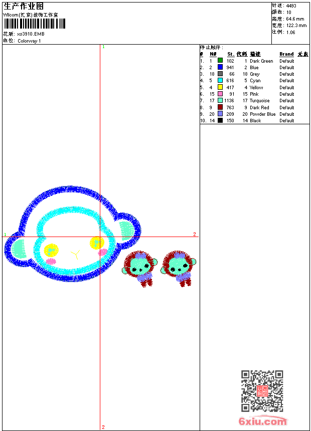 - 版带文件需绣花软件方可打开,可配色打印导出各种格式或直接上机绣。如无绣花软件可下载1:1模拟效果图。