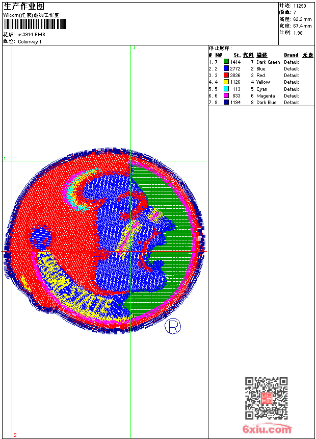- 版带文件需绣花软件方可打开,可配色打印导出各种格式或直接上机绣。如无绣花软件可下载1:1模拟效果图。