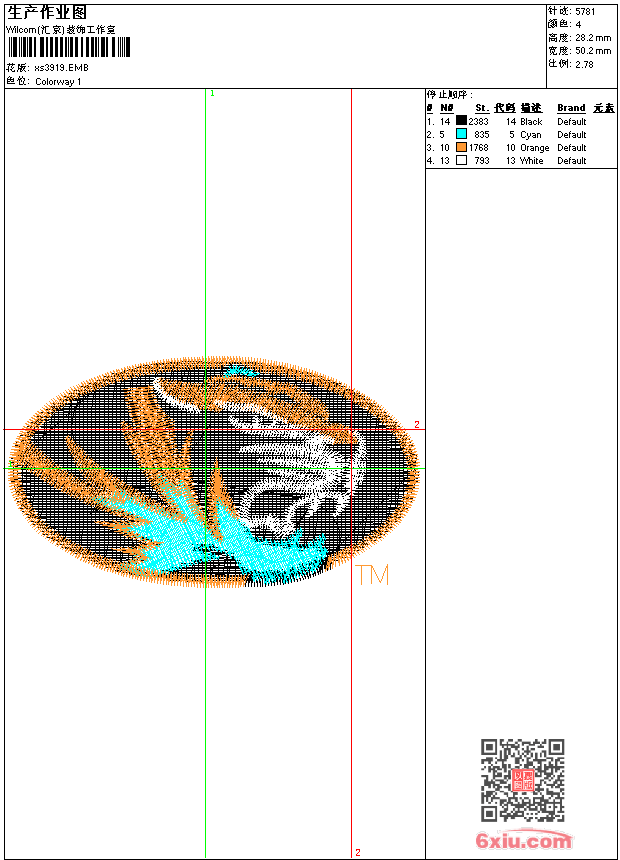 - 版带文件需绣花软件方可打开,可配色打印导出各种格式或直接上机绣。如无绣花软件可下载1:1模拟效果图。