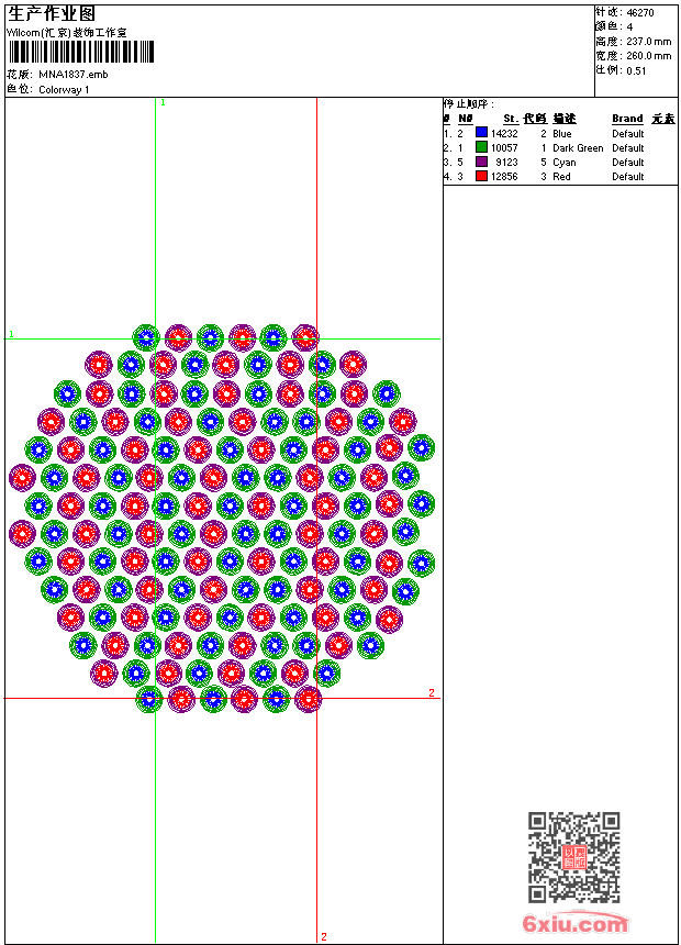 - emb花版参数: 大小:74.50 KB / 尺寸:260*237[毫米] / 针数:46270针 / 线色:4 / 格式:emb / 版本:9