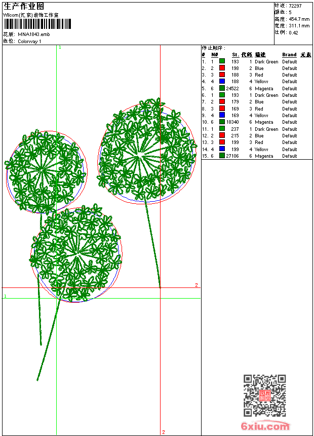 - emb花版参数: 大小:1.16 MB / 尺寸:311*455[毫米] / 针数:72297针 / 线色:5 / 格式:emb / 版本:9