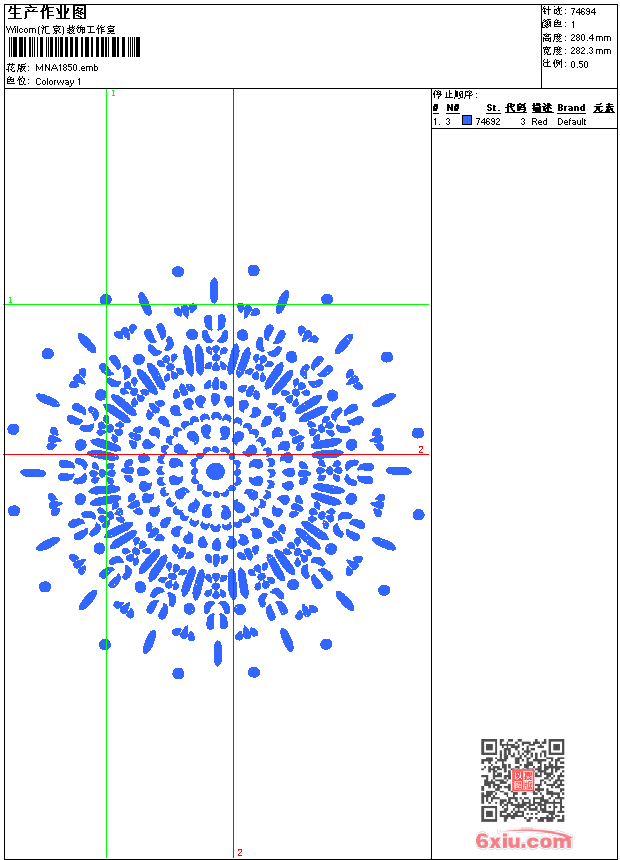 - emb花版参数: 大小:369.50 KB / 尺寸:282*280[毫米] / 针数:74694针 / 线色:1 / 格式:emb / 版本:9