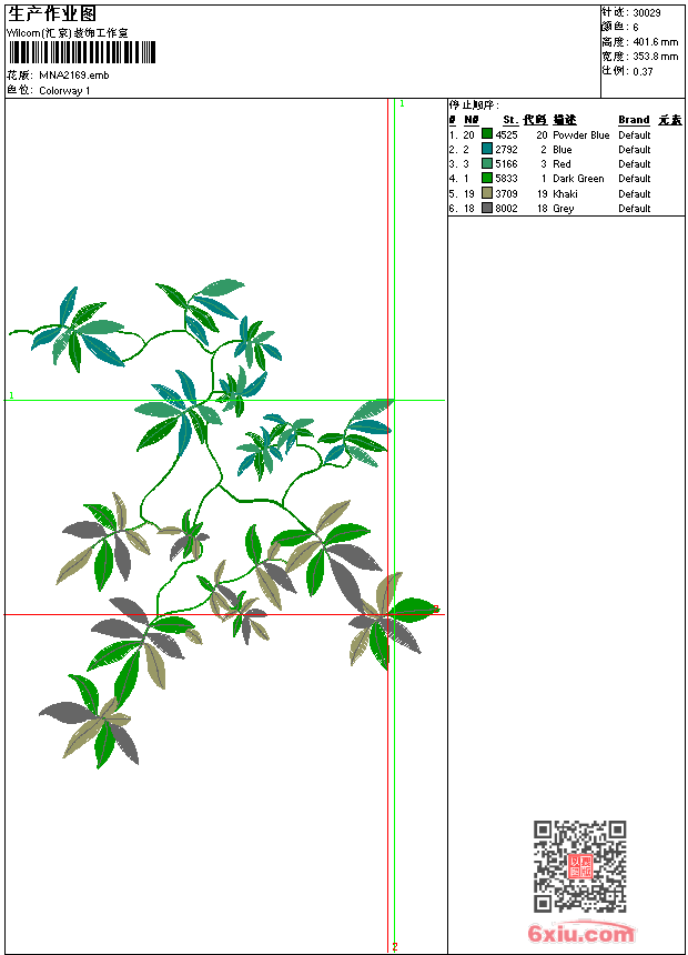 - emb花版参数: 大小:141.50 KB / 尺寸:354*402[毫米] / 针数:30029针 / 线色:6 / 格式:emb / 版本:9
