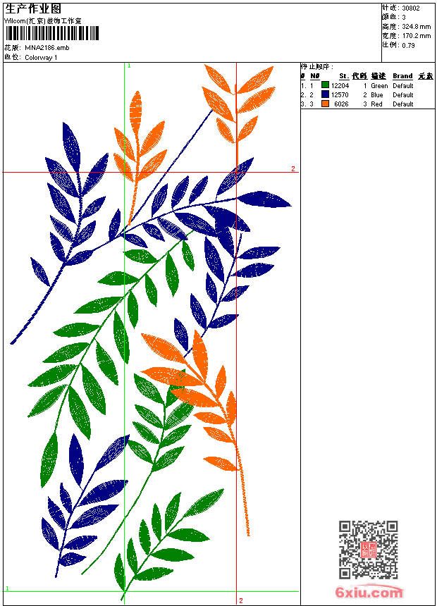 - emb花版参数: 大小:69.50 KB / 尺寸:170*325[毫米] / 针数:30802针 / 线色:3 / 格式:emb / 版本:9