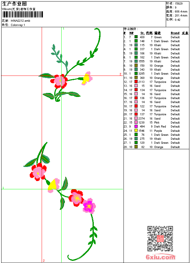 - emb花版参数: 大小:117.00 KB / 尺寸:201*608[毫米] / 针数:15829针 / 线色:9 / 格式:emb / 版本:9