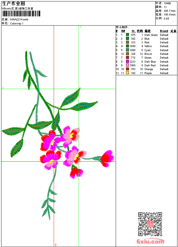 - emb花版参数: 大小:77.00 KB / 尺寸:190*289[毫米] / 针数:10496针 / 线色:11 / 格式:emb / 版本:9
