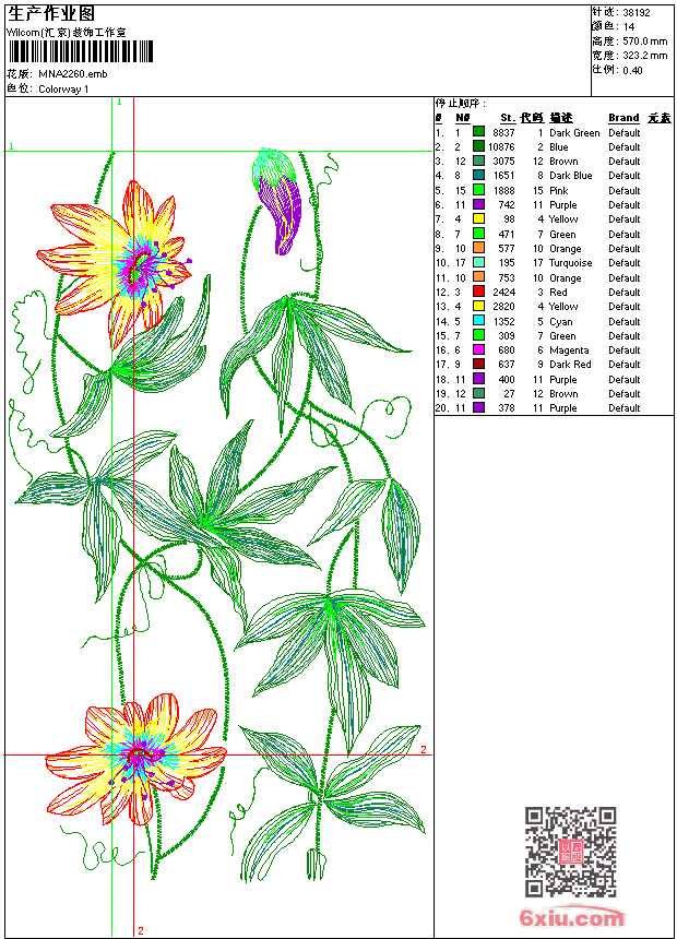 - emb花版参数: 大小:279.50 KB / 尺寸:323*570[毫米] / 针数:38192针 / 线色:14 / 格式:emb / 版本:9