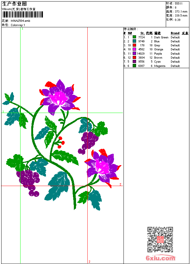 - emb花版参数: 大小:244.50 KB / 尺寸:340*373[毫米] / 针数:55511针 / 线色:8 / 格式:emb / 版本:9