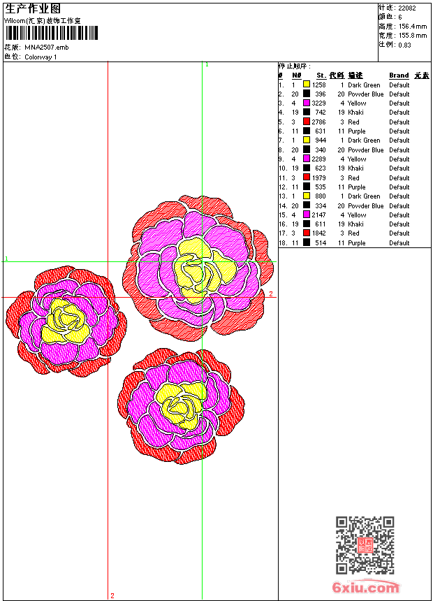 - emb花版参数: 大小:123.00 KB / 尺寸:156*156[毫米] / 针数:22082针 / 线色:6 / 格式:emb / 版本:9