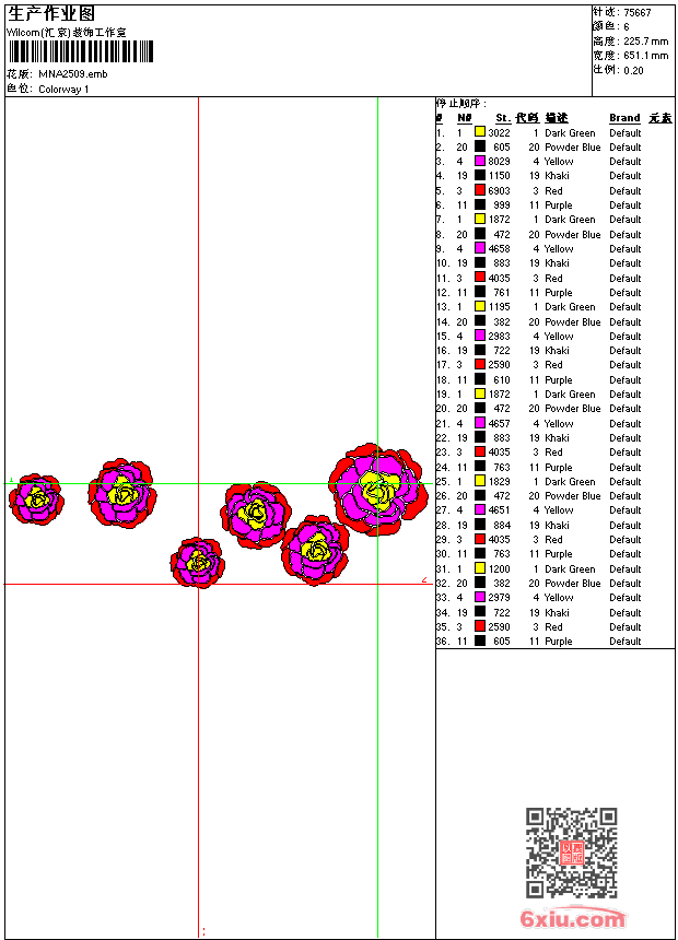 - emb花版参数: 大小:300.50 KB / 尺寸:651*226[毫米] / 针数:75667针 / 线色:6 / 格式:emb / 版本:9