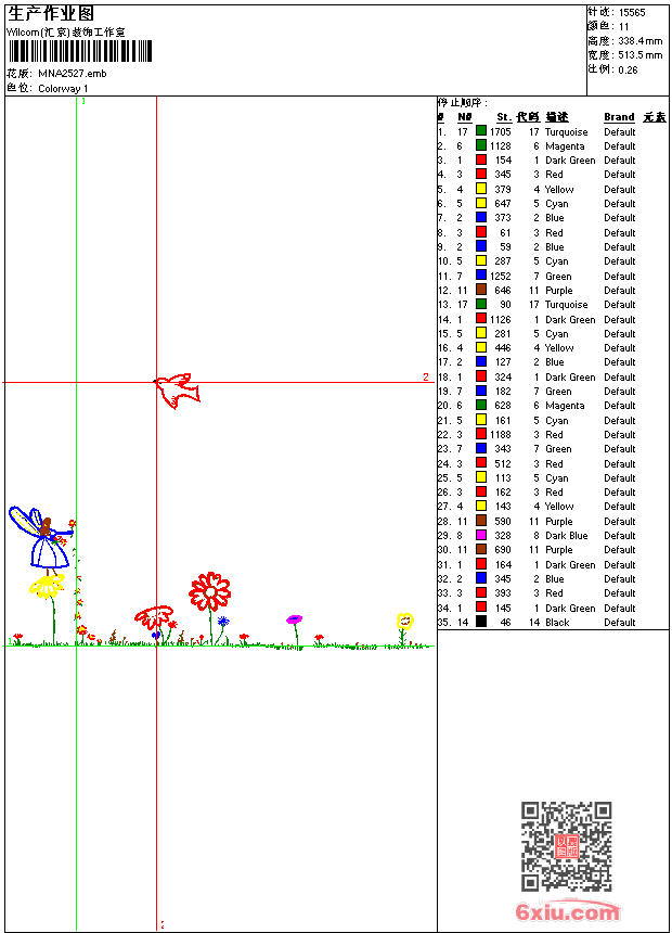 - emb花版参数: 大小:165.50 KB / 尺寸:514*338[毫米] / 针数:15565针 / 线色:11 / 格式:emb / 版本:9