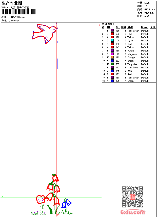 - 版带文件需绣花软件方可打开,可配色打印导出各种格式或直接上机绣。如无绣花软件可下载1:1模拟效果图。