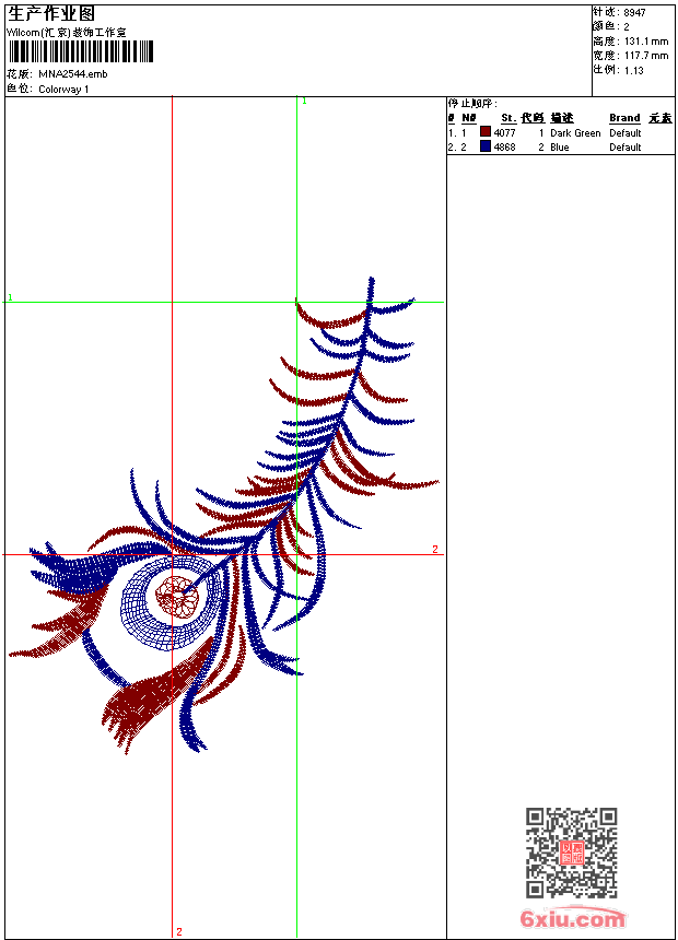 - emb花版参数: 大小:54.00 KB / 尺寸:118*131[毫米] / 针数:8947针 / 线色:2 / 格式:emb / 版本:9