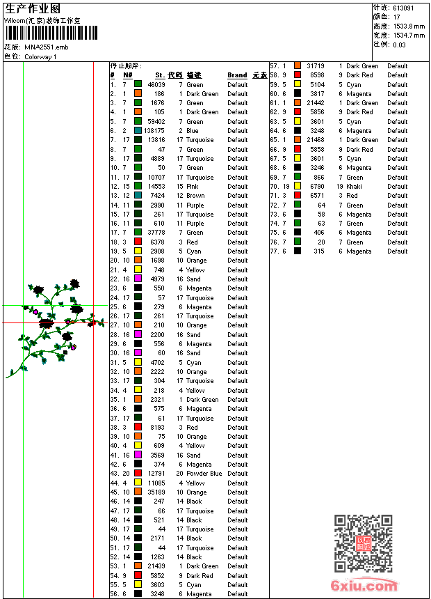 - emb花版参数: 大小:1.96 MB / 尺寸:1535*1534[毫米] / 针数:613091针 / 线色:17 / 格式:emb / 版本:9
