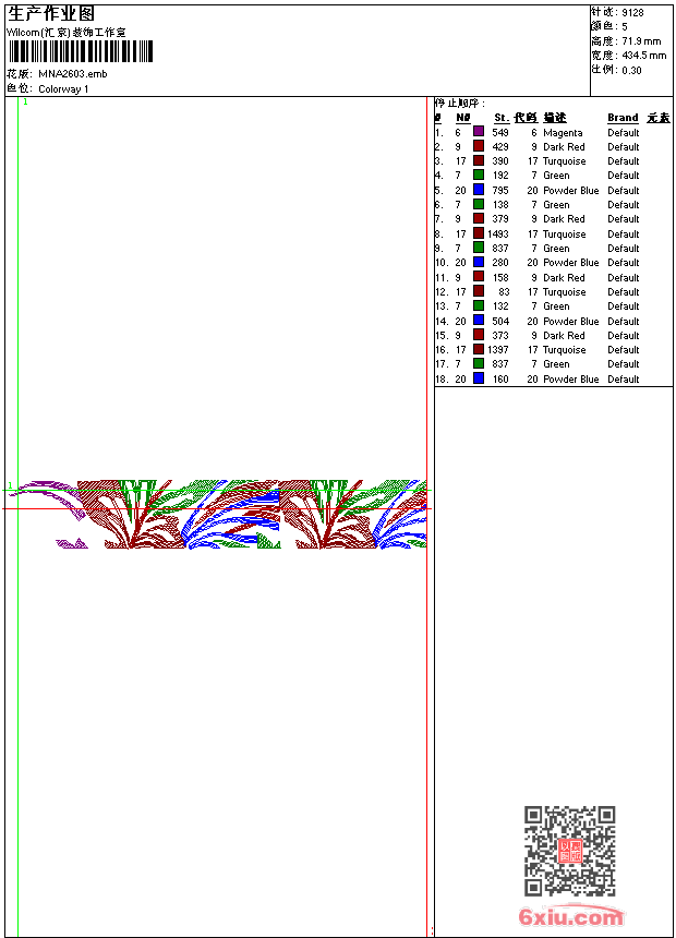 - emb花版参数: 大小:55.00 KB / 尺寸:434*72[毫米] / 针数:9128针 / 线色:5 / 格式:emb / 版本:9