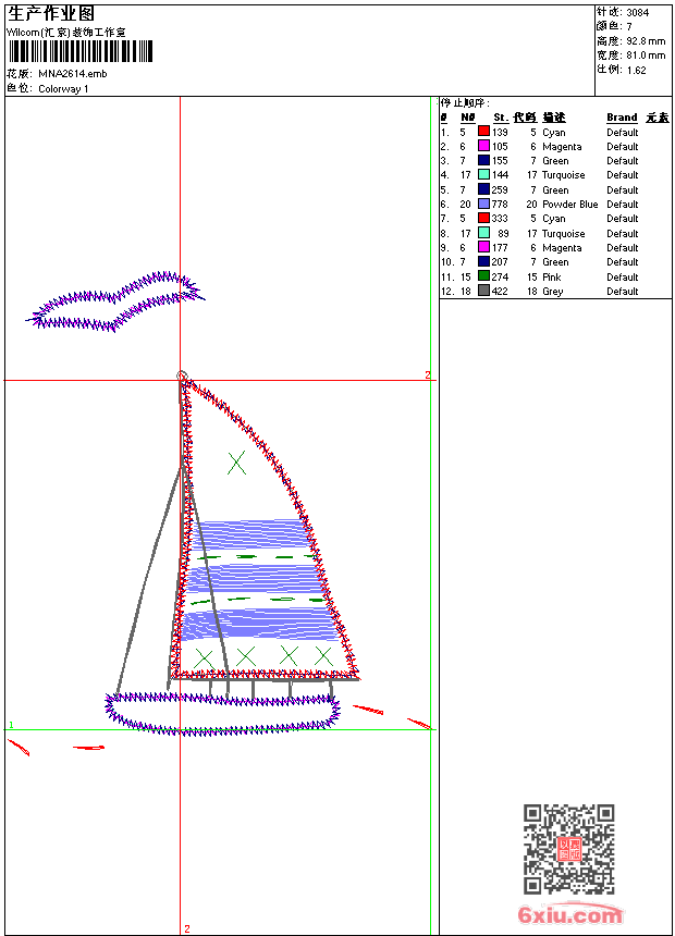 - 版带文件需绣花软件方可打开,可配色打印导出各种格式或直接上机绣。如无绣花软件可下载1:1模拟效果图。