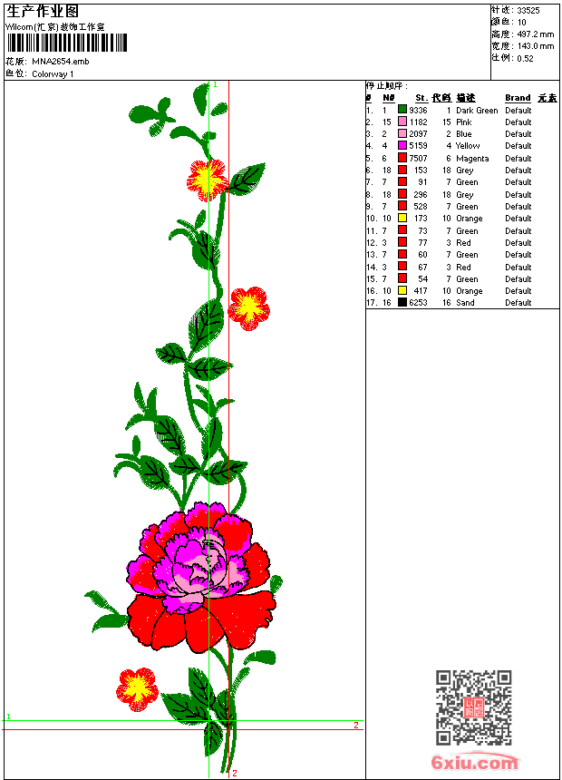 - 版带文件需绣花软件方可打开,可配色打印导出各种格式或直接上机绣。如无绣花软件可下载1:1模拟效果图。