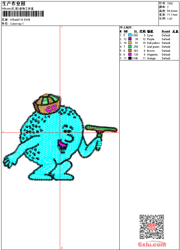 - 版带文件需绣花软件方可打开,可配色打印导出各种格式或直接上机绣。如无绣花软件可下载1:1模拟效果图。