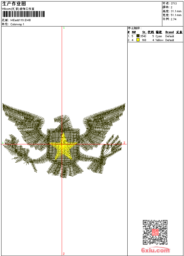 - emb花版参数: 大小:1.63 MB / 尺寸:51*31[毫米] / 针数:3713针 / 线色:2 / 格式:emb / 版本:9