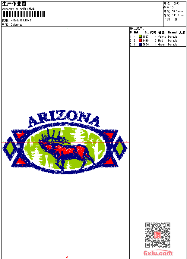 - emb花版参数: 大小:170.50 KB / 尺寸:111*57[毫米] / 针数:10973针 / 线色:3 / 格式:emb / 版本:9