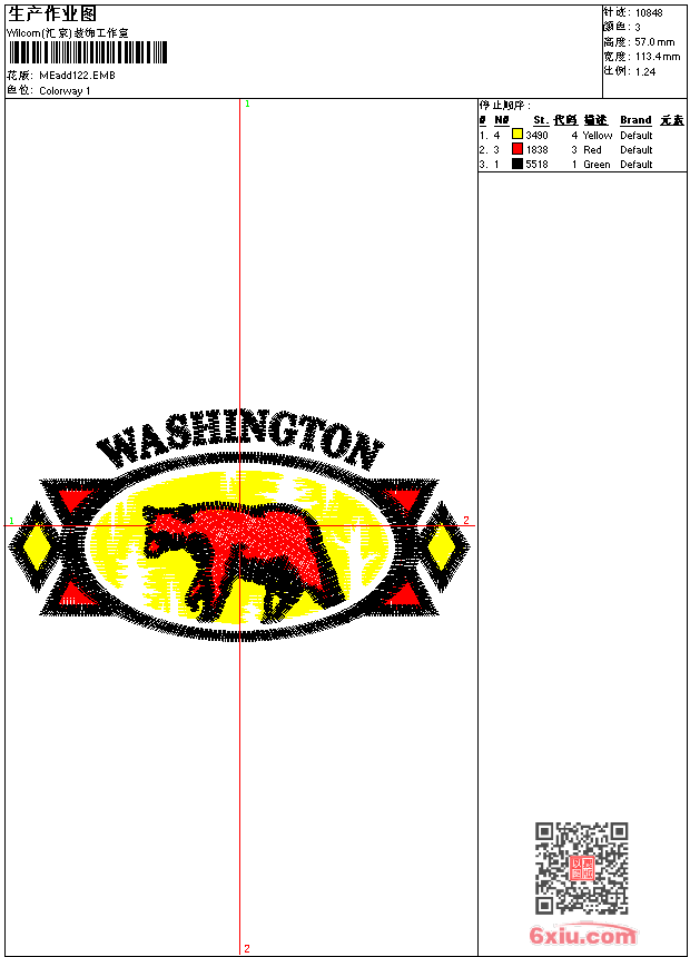 - emb花版参数: 大小:168.00 KB / 尺寸:113*57[毫米] / 针数:10847针 / 线色:3 / 格式:emb / 版本:9