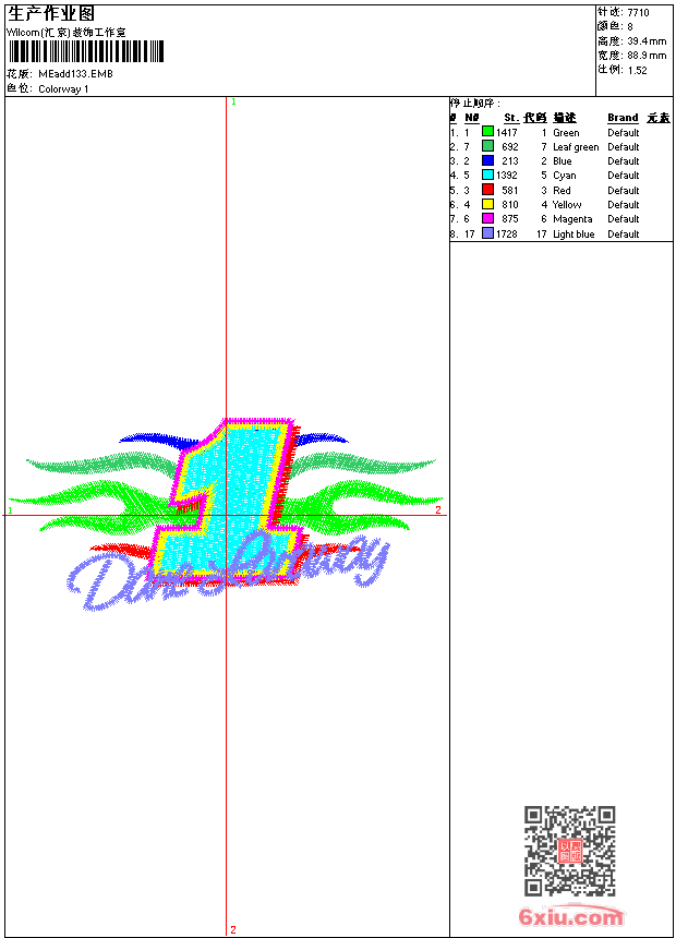 - 版带文件需绣花软件方可打开,可配色打印导出各种格式或直接上机绣。如无绣花软件可下载1:1模拟效果图。
