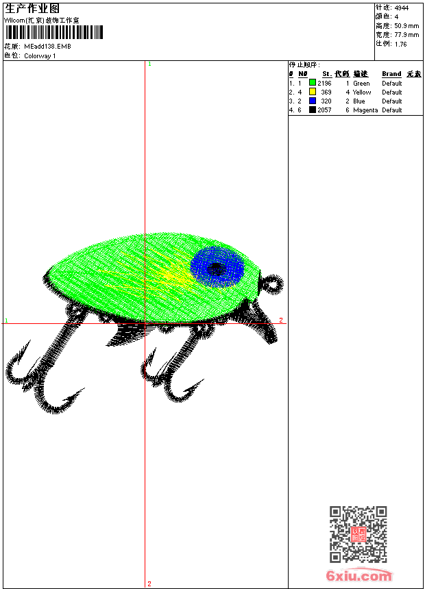 - emb花版参数: 大小:83.00 KB / 尺寸:78*51[毫米] / 针数:4943针 / 线色:4 / 格式:emb / 版本:9