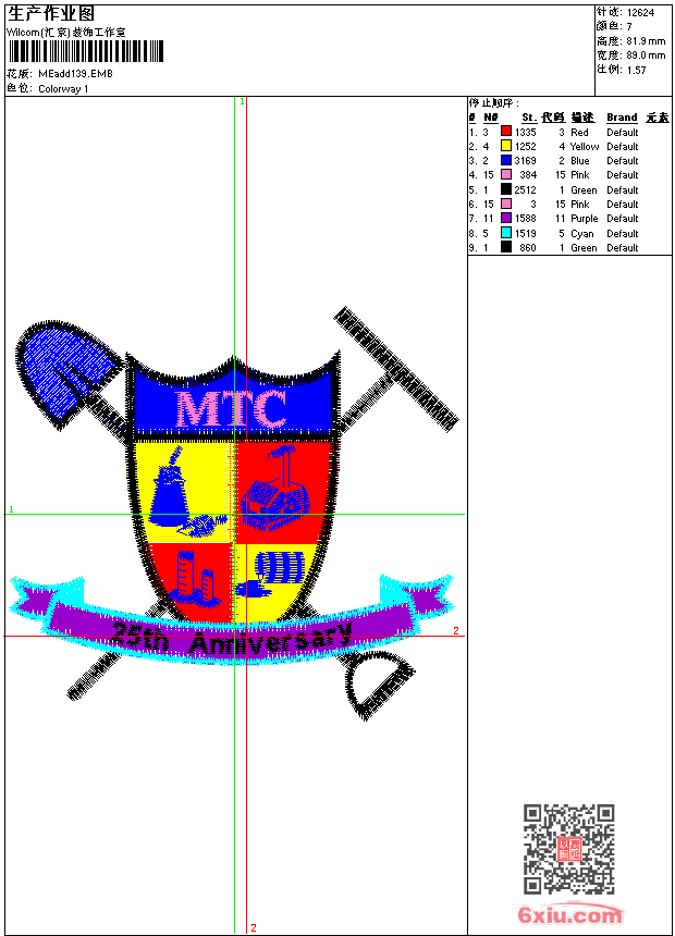 - emb花版参数: 大小:186.50 KB / 尺寸:89*82[毫米] / 针数:12623针 / 线色:7 / 格式:emb / 版本:9