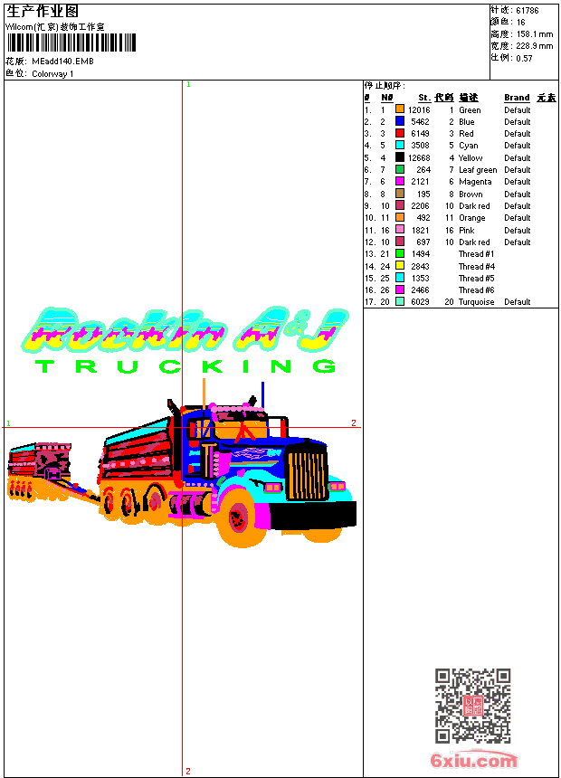 - emb花版参数: 大小:513.50 KB / 尺寸:229*158[毫米] / 针数:61786针 / 线色:16 / 格式:emb / 版本:9