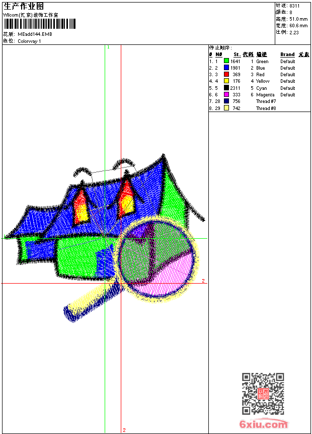 - 版带文件需绣花软件方可打开,可配色打印导出各种格式或直接上机绣。如无绣花软件可下载1:1模拟效果图。