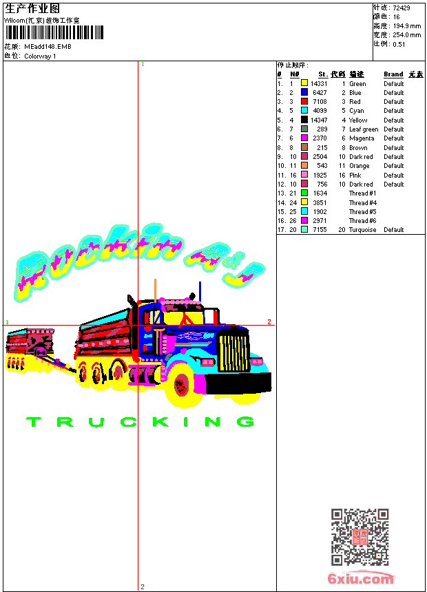 - 版带文件需绣花软件方可打开,可配色打印导出各种格式或直接上机绣。如无绣花软件可下载1:1模拟效果图。