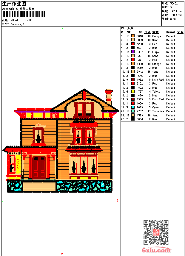 - emb花版参数: 大小:165.00 KB / 尺寸:150*147[毫米] / 针数:55602针 / 线色:9 / 格式:emb / 版本:9