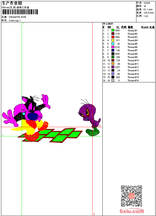 - 版带文件需绣花软件方可打开,可配色打印导出各种格式或直接上机绣。如无绣花软件可下载1:1模拟效果图。