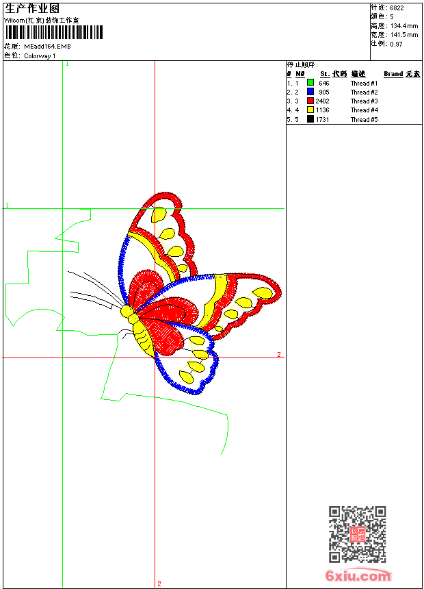 - emb花版参数: 大小:34.50 KB / 尺寸:142*134[毫米] / 针数:6822针 / 线色:5 / 格式:emb / 版本:9