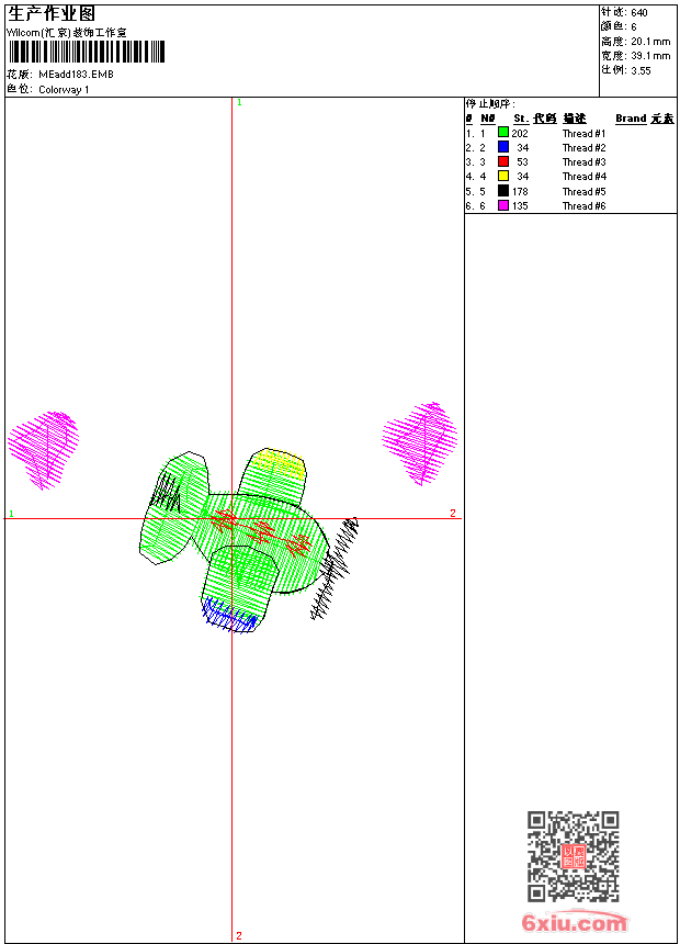- emb花版参数: 大小:22.50 KB / 尺寸:39*20[毫米] / 针数:640针 / 线色:6 / 格式:emb / 版本:9