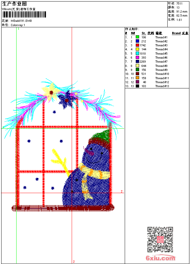 - 版带文件需绣花软件方可打开,可配色打印导出各种格式或直接上机绣。如无绣花软件可下载1:1模拟效果图。