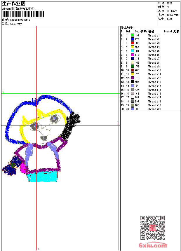 - 版带文件需绣花软件方可打开,可配色打印导出各种格式或直接上机绣。如无绣花软件可下载1:1模拟效果图。