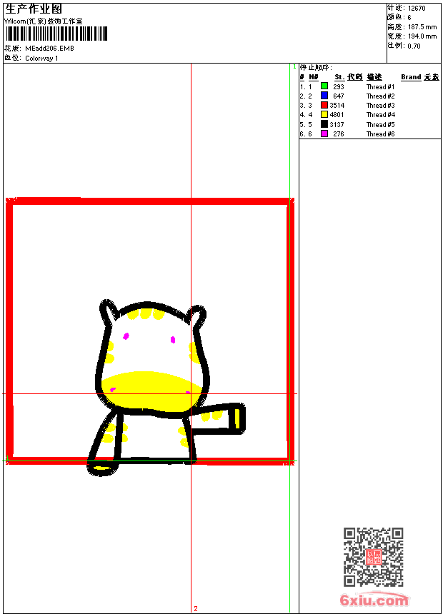 - emb花版参数: 大小:37.50 KB / 尺寸:194*188[毫米] / 针数:12670针 / 线色:6 / 格式:emb / 版本:9