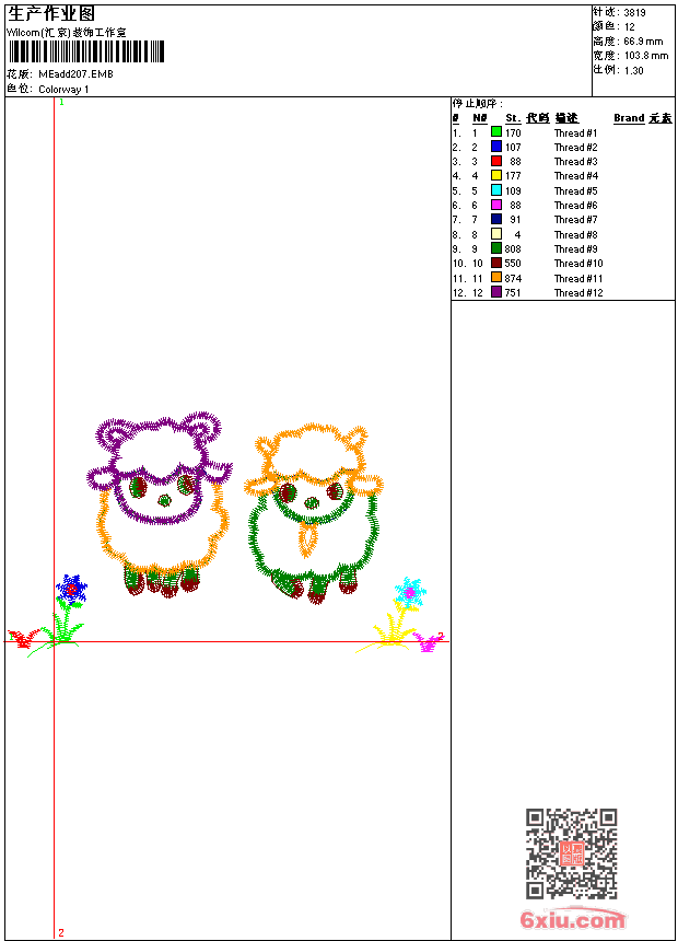 - emb花版参数: 大小:46.50 KB / 尺寸:104*67[毫米] / 针数:3819针 / 线色:12 / 格式:emb / 版本:9