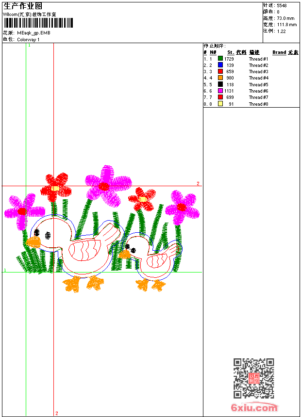 - emb花版参数: 大小:40.50 KB / 尺寸:112*73[毫米] / 针数:5548针 / 线色:8 / 格式:emb / 版本:9