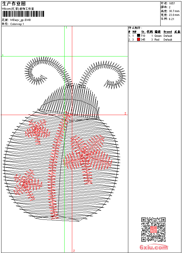 - emb花版参数: 大小:21.50 KB / 尺寸:23*31[毫米] / 针数:1056针 / 线色:2 / 格式:emb / 版本:9